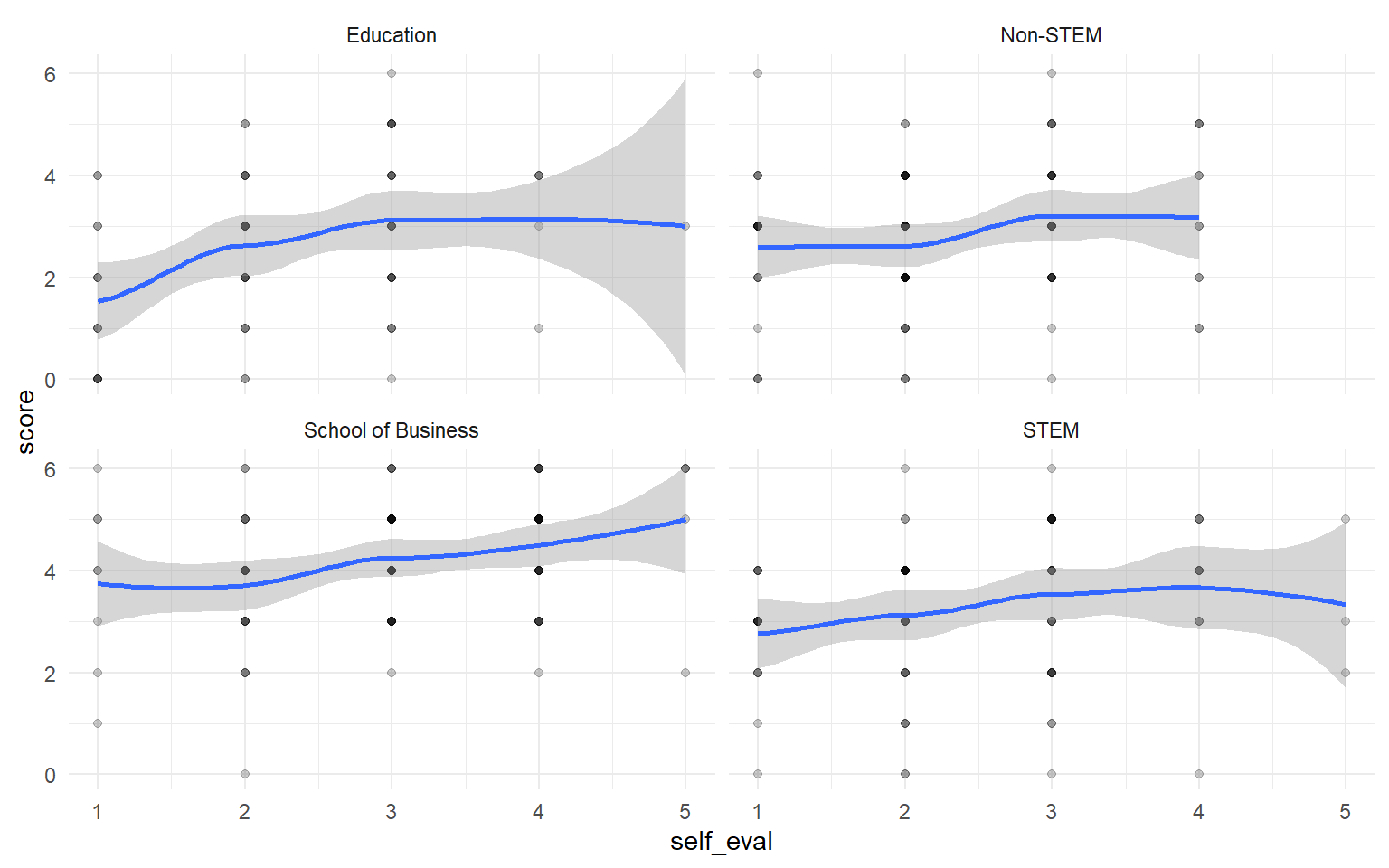 How does the Relationship between Self Evaluation and Score Vary by Major?