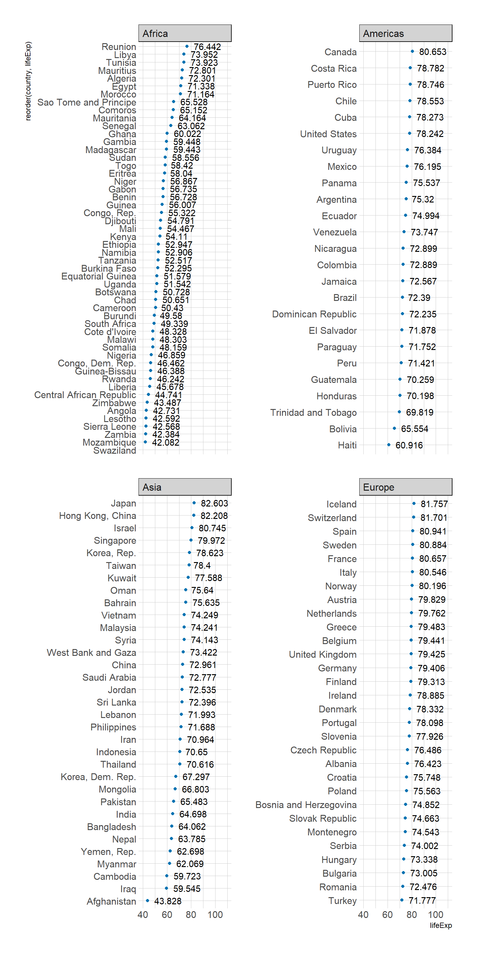 y = reorder(country, lifeExp))) +